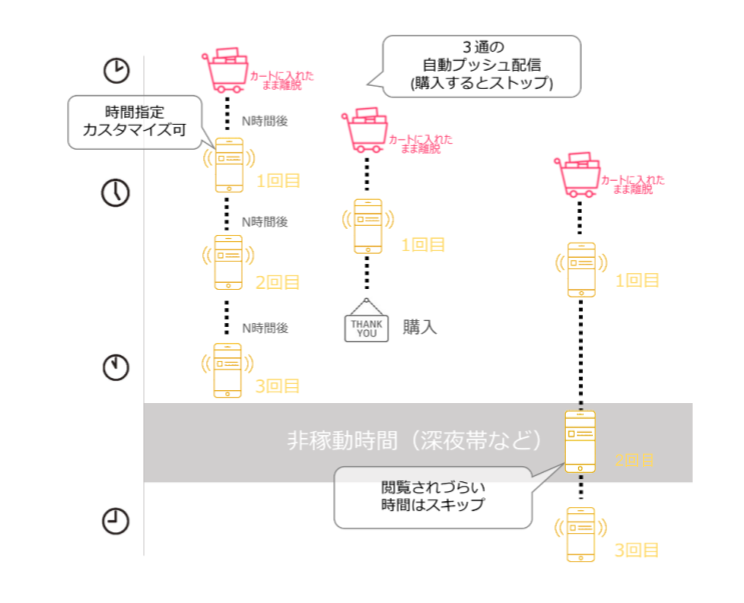 ※通知許諾済みの該当ユーザーがカートプッシュ配信対象になります。